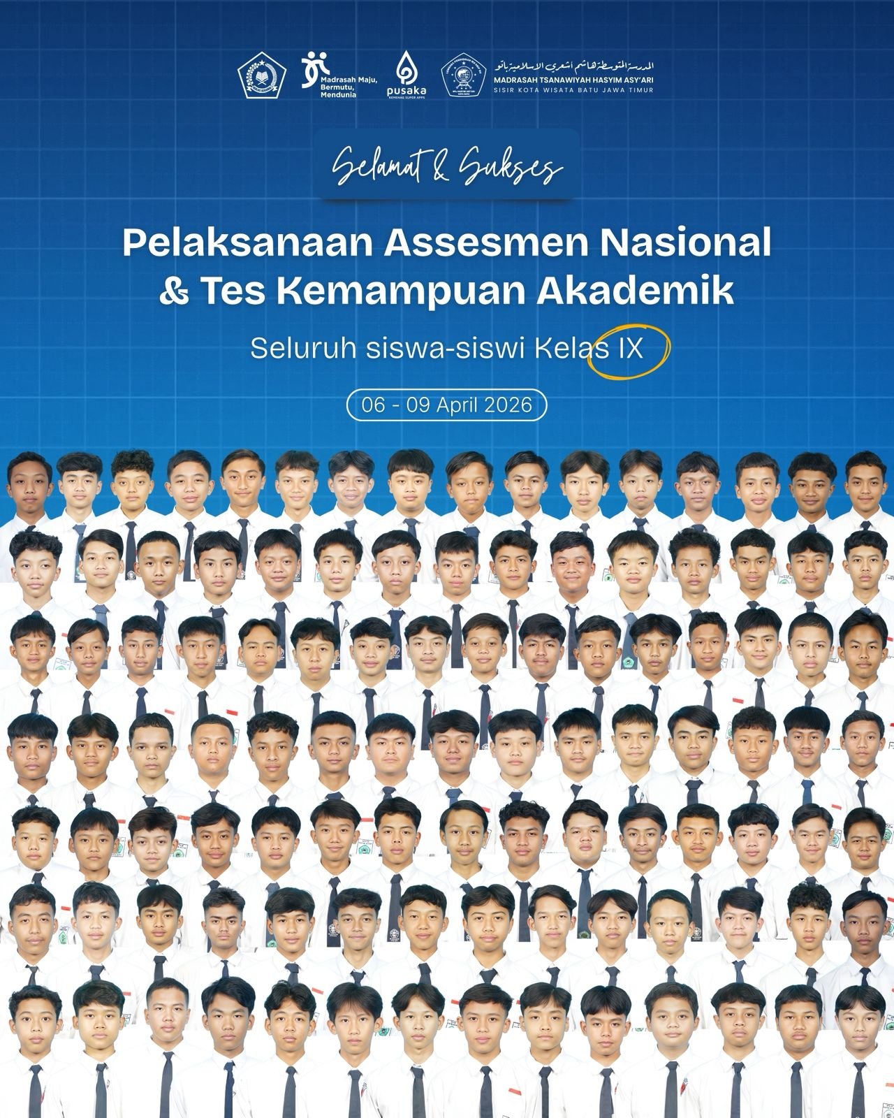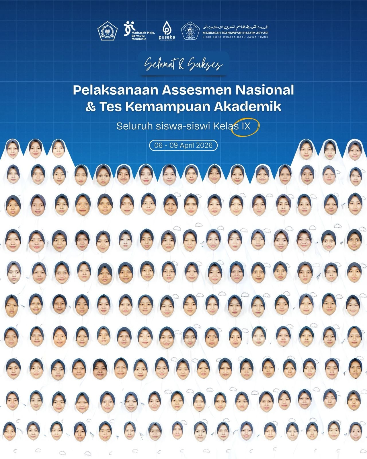 Mulai hari ini, seluruh kegiatan belajar mengajar (KBM) di MTs Hasyim Asy'ari Kota Batu sudah kembali berjalan normal, lho! Mulai dari bimbingan baca Al-Qur'an yang menyejukkan hati, kelas reguler yang seru, sampai berbagai ekstrakurikuler yang bikin bakatmu makin terasah! Yuk, siapkan semangat terbaikmu untuk hari ini!