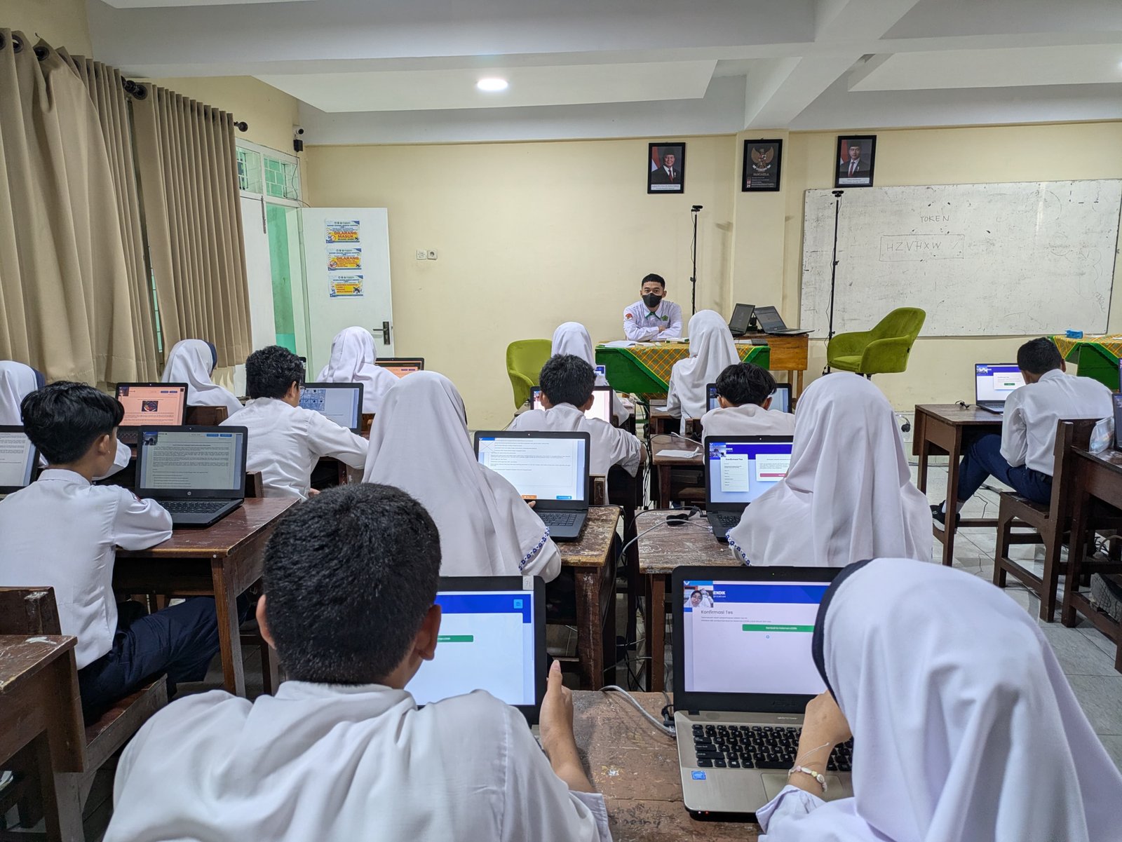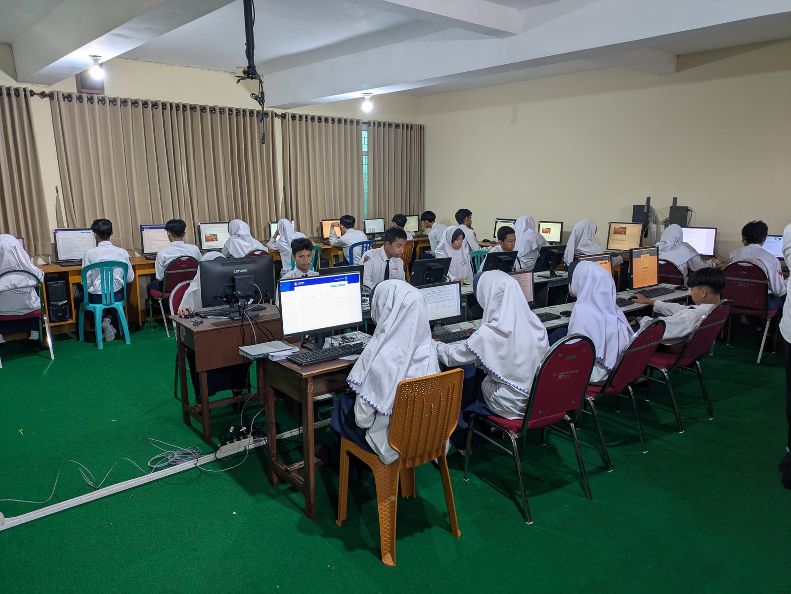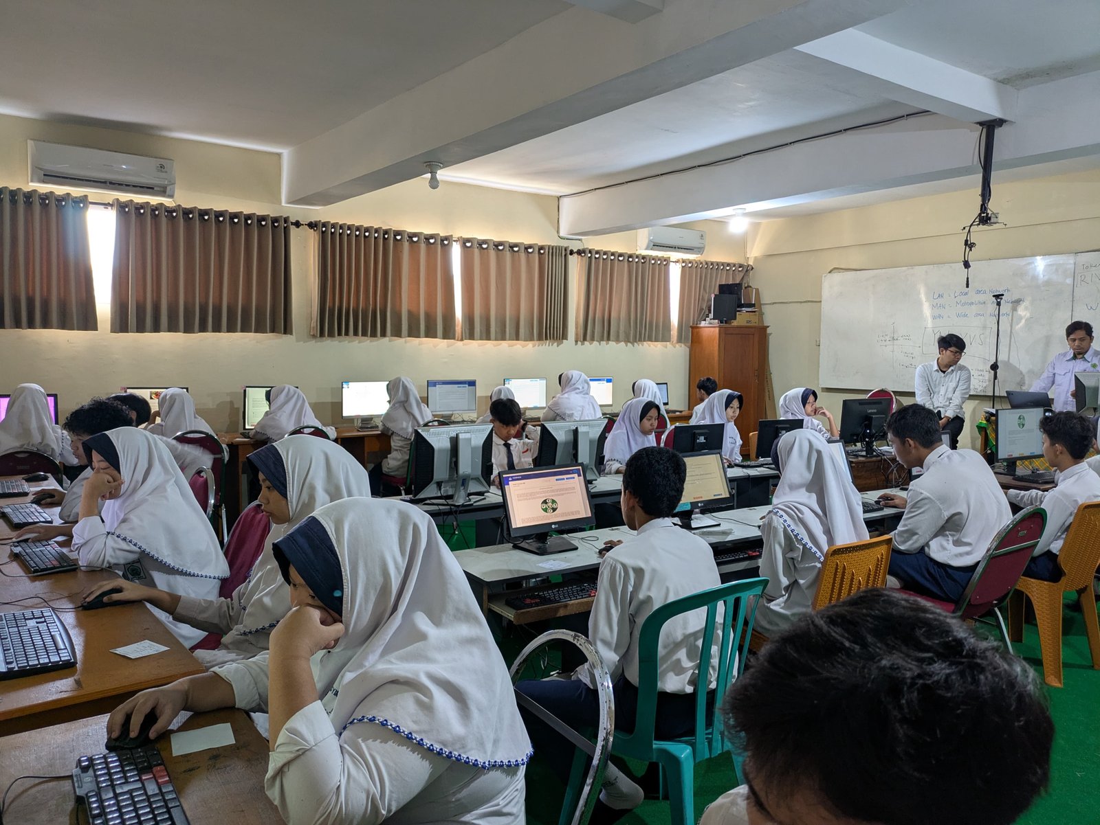 tampak di wajah para santri saat mengerjakan butir-butir soal di layar komputer