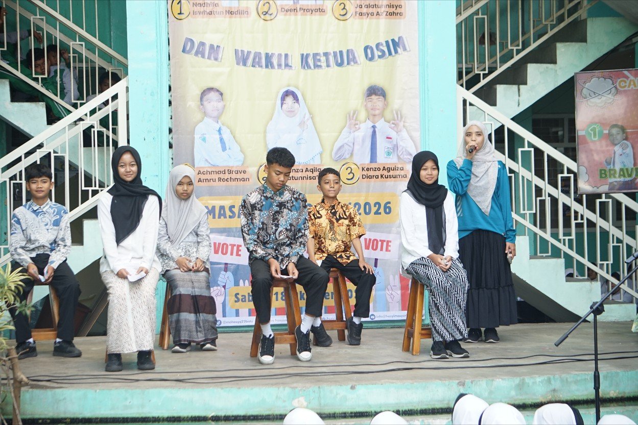 Sementara itu, tiga calon wakil ketua OSIM yang turut berpartisipasi adalah Achmad Brave Amru Rochman (kelas 7B), Khanza Aqila Izzatunnisa’ (kelas 7H), dan Kenzo Aguiza Diara Kusuma (kelas 7A). Mereka tampil dengan penuh percaya diri, menyampaikan dukungan dan program kerja yang akan mereka usung bersama calon ketua masing-masing. Penampilan mereka mendapat sambutan meriah dari para siswa yang memberikan tepuk tangan dan sorakan dukungan kepada calon favorit mereka.