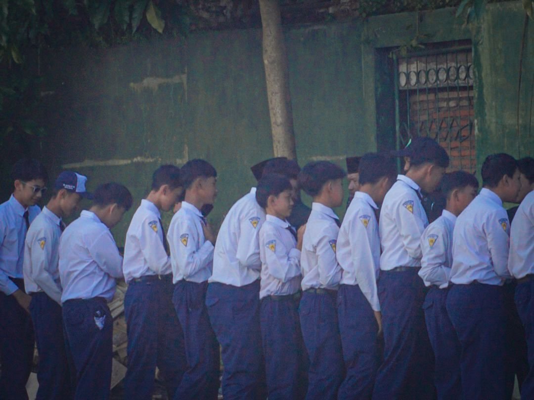 para siswa berbaris untuk bersalaman dengan Bapak dan Ibu Guru serta sesama