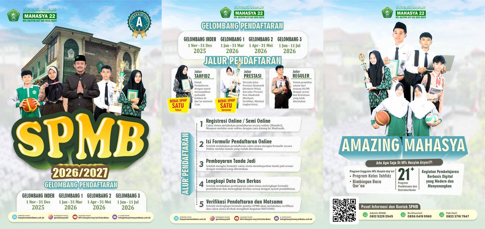 MTs Hasyim Asyari dengan bangga membuka Penerimaan Peserta Didik Baru (PPDB) untuk Tahun Pelajaran 2026/2027. Kami mengundang putra-putri terbaik bangsa untuk bergabung dan menjadi bagian dari madrasah yang berkomitmen mencetak generasi cerdas, berakhlak mulia, dan berdaya saing tinggi. Sebagai lembaga pendidikan Islam yang terus berkembang, MTs Hasyim Asyari menghadirkan lingkungan belajar yang religius, disiplin, dan berprestasi, didukung oleh tenaga pendidik profesional serta fasilitas yang nyaman dan representatif. Melalui program pembelajaran yang terpadu antara ilmu pengetahuan umum dan pendidikan keagamaan, kami berupaya membentuk peserta didik yang tidak hanya unggul dalam akademik, tetapi juga berkarakter Islami, kreatif, dan berjiwa sosial.